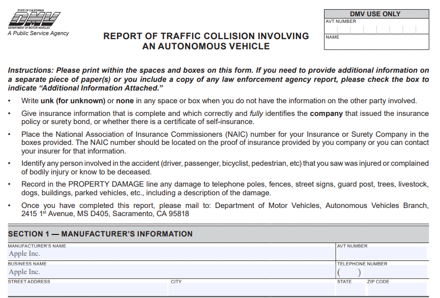 第一起事故于 8 月 19 日发生在加州圣地亚哥的希尔克雷斯特地区。苹果改装的雷克萨斯 RX 450h 在堵车时被一辆现代汽车撞到。事故被描述为轻微碰撞,没有人受伤。