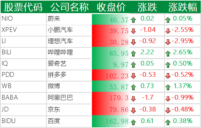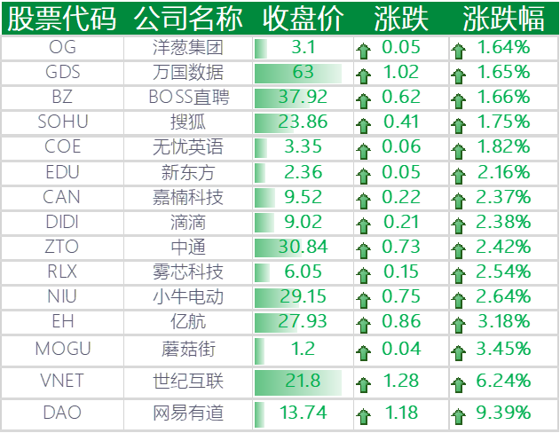▲ 上涨的其他中概股