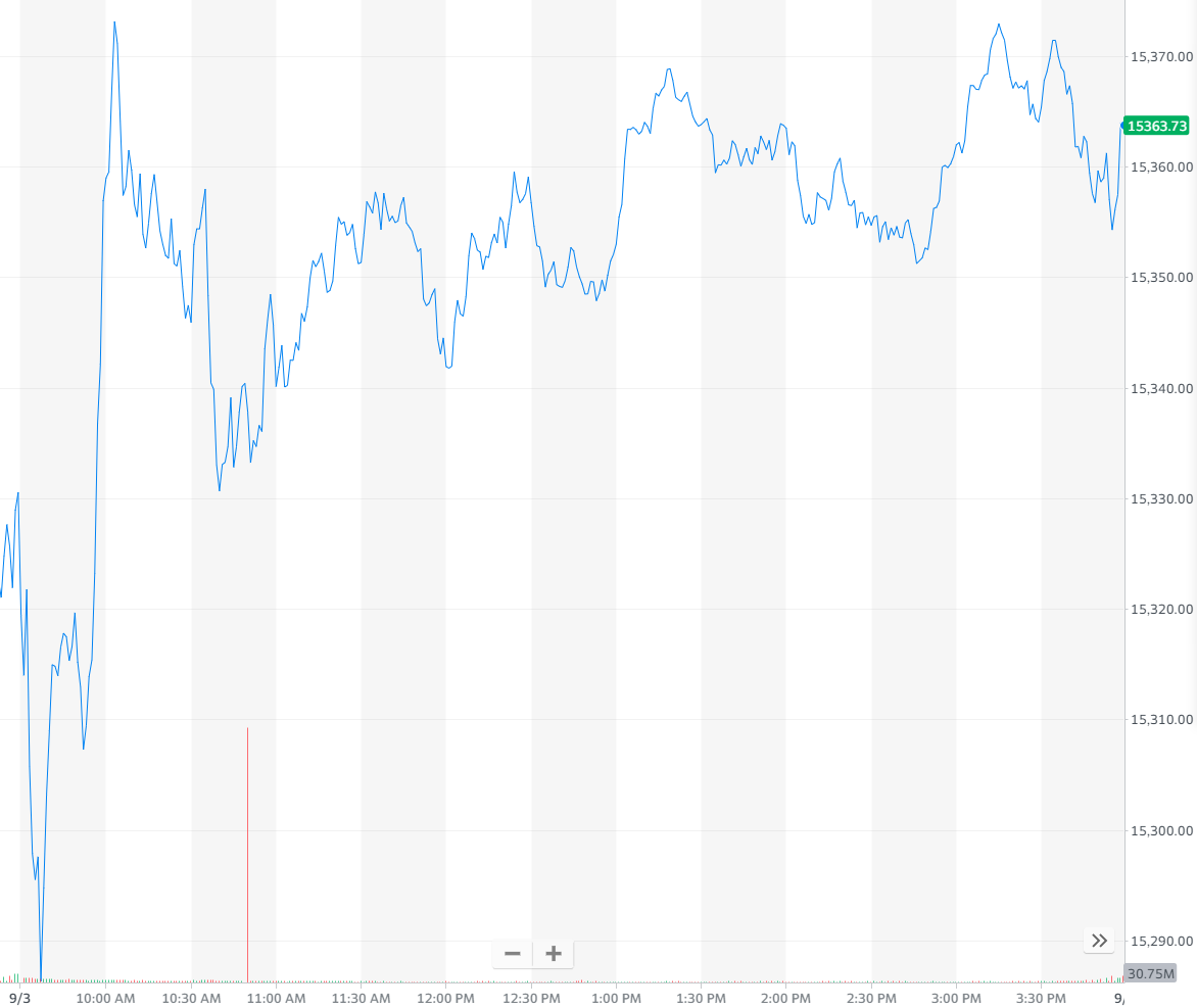 北京时间 9 月 4 日消息,美国 8 月份非农就业人数增加 23.5 万,远逊于 75 万的预期,投资者考虑不及预期的非农就业人数对美联储缩减购债规模时间的影响,美股涨跌不一。截至收盘,道指跌 74.73 点,跌幅为 0.21%,报收 35369.09 点;标普 500 指数跌 1.52 点,跌幅为 0.03%,报收 4535.43 点;纳指涨 32.34 点,涨幅为 0.21%,报收 15363.52 点。