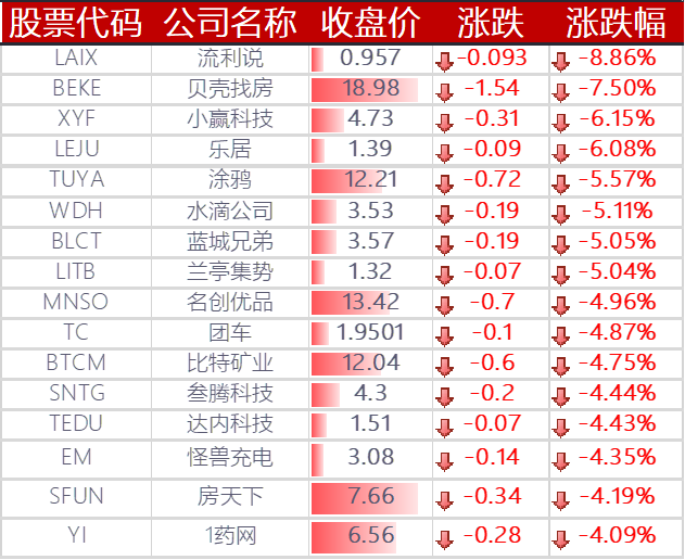 ▲ 下跌的其他中概股