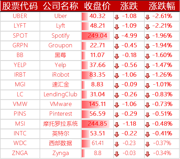 ▲ 下跌的其他国外科技股